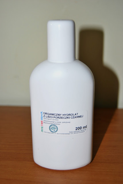 Pielęgnacja rano nie zajmuje mi niewiele czasu, zaczynam od przemycia twarzy hydrolatem z liści Czarnej Porzeczki, daje mi uczucie odświeżenia zaraz po przebudzeniu